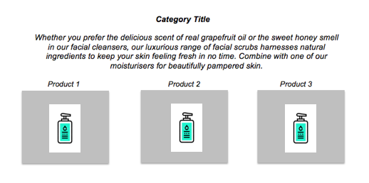 Let’s say our category is facial cleansers; here’s what the category should look like.