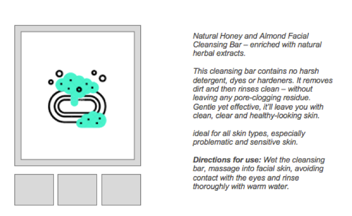 And what about those all-important product descriptions? Again, we’ll use a face wash: